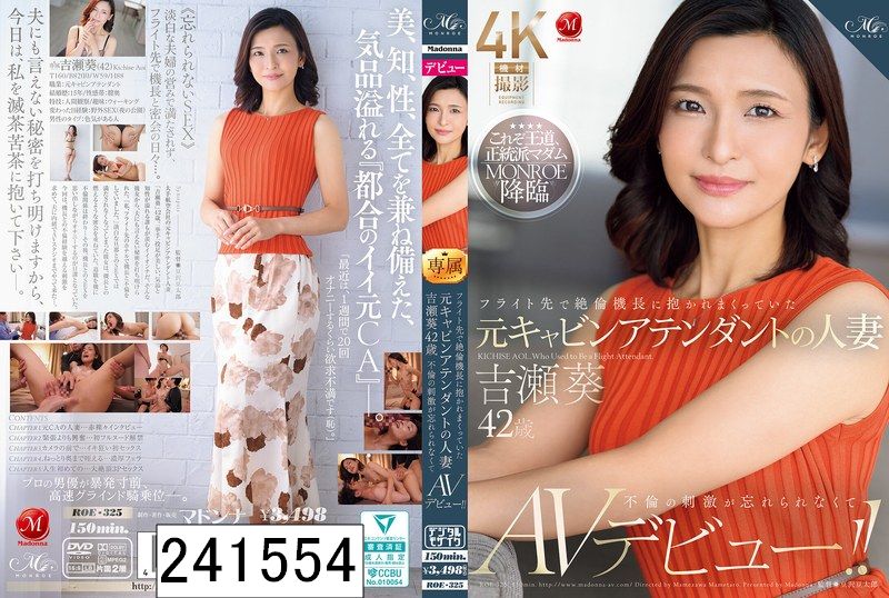 大手航空会社の元キャビンアテンダント人妻「吉瀬葵」42歳。一挙手一投足が美しい、気品と知性が溢れる誰もが羨むイイオンナだ。そんな彼女から、夫にも言えない秘密を打ち明けられた。『私、フライト先のホテルで機長と不倫をしていました。』淡白な旦那とのSEXでは満たされなくなってしまった彼女は、機長との燃えるような密会を重ねていた。退職を機に不倫関係は終わり…その後、機長とのSEXを思い出しながらオナニーするのが日課となっていた。今回は、機長との不倫経験を越える刺激を求めて、夫に内緒でAVスタジオまでやって来た…。